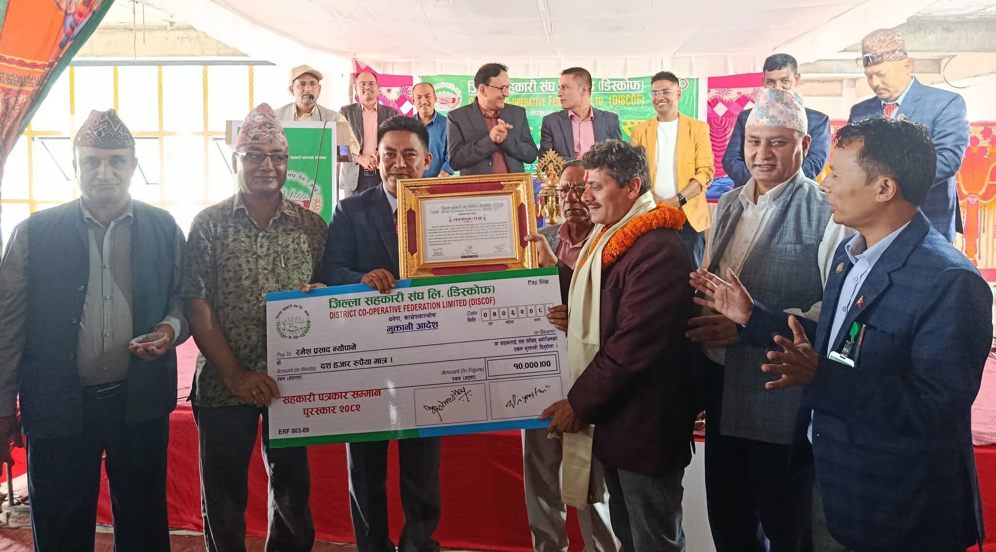 साधारण सभामा विगतका बर्ष प्रदान गदै आएको सहकारी पत्रकार सम्मान पुरस्कार यस बर्ष काभ्रे टाइम्स साप्ताहिकका कार्यकारी सम्पादक एवं रेडियो एबिसीका अध्यक्ष रमेशप्रसाद न्यौपानेलाई नगद १० हजार रुपैयाँसहित प्रदान गरिएको थियो । सहकारी संघमा आवद्ध सहकारी मध्येबाट उत्कृष्ट व्यवस्थापकको रुपमा नवदुर्गा बचत तथा ऋण सहकारी संस्थाका व्यवस्थापक दिपक तिमल्सिनालाई सम्मान गरिएको थियो । पाँचखाल नगरपालिका वडा नं १० स्थित आत्मनिर्भर बहुउद्देश्यीय सहकारी संस्थालाई नगद सहित सम्मान गरिएको थियो ।