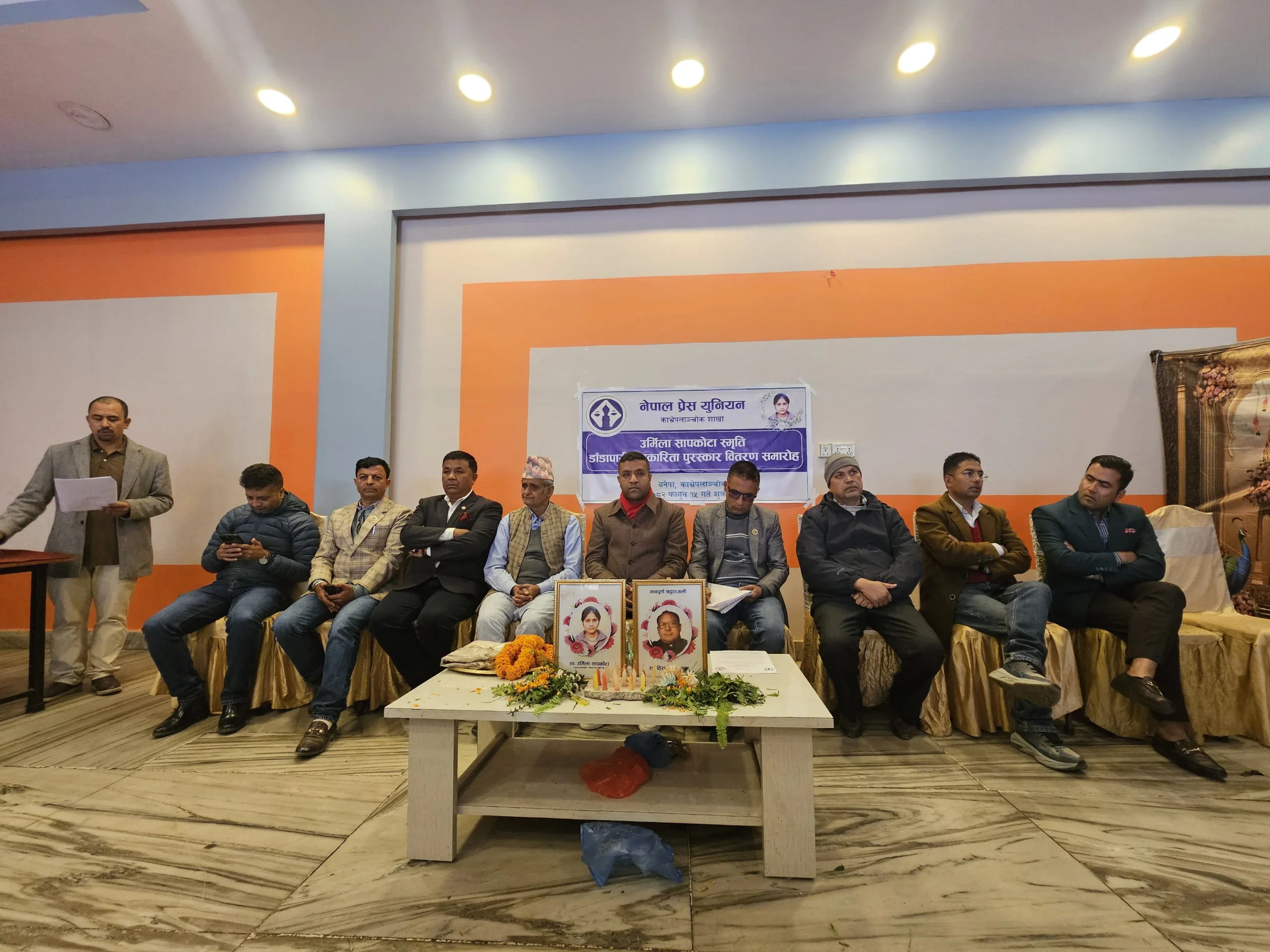 नेपाल प्रेस युनियन काभ्रेपलाञ्चोकका अध्यक्ष नगेन्द्र अधिकारीले पत्रकारिता क्षेत्रको सम्मानको लागि पुरस्कार स्थापना गर्ने परिवारलाई आभार प्रकट गरे ।